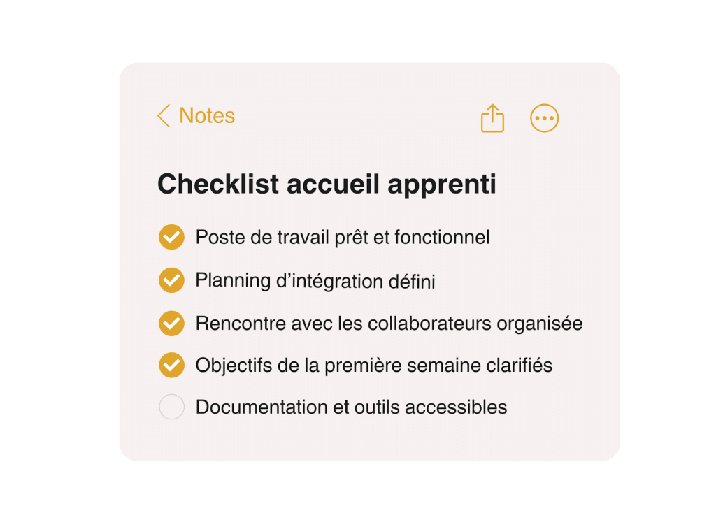 Checklist de compétences : elle permet de visualiser la progression réelle de votre apprenti.